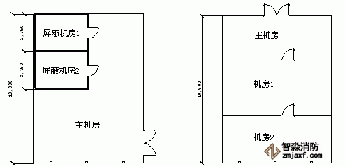 如上圖所述,兩個(gè)屏蔽機(jī)房被套裝在主機(jī)房?jī)?nèi)。滅火分區(qū)劃分出現(xiàn)兩種不同意見(jiàn),一種意見(jiàn)是將三個(gè)房間劃成一個(gè)區(qū)域采用全淹沒(méi)單元獨(dú)立系統(tǒng)進(jìn)行滅火,也就是說(shuō)三個(gè)區(qū)域中任何一個(gè)發(fā)生火災(zāi)時(shí)三個(gè)房間同時(shí)發(fā)出警報(bào)并同時(shí)噴放藥劑;另外一種意見(jiàn)是將這三個(gè)房間當(dāng)成三個(gè)獨(dú)立的防火分區(qū),采用一套組合分配全淹沒(méi)滅火系統(tǒng),任何一個(gè)房間發(fā)生火災(zāi)時(shí)三個(gè)房間同時(shí)報(bào)警,但系統(tǒng)只向發(fā)生火災(zāi)的區(qū)域噴放滅火藥劑。前者意見(jiàn)使用藥劑量要大于后者,三個(gè)房間實(shí)際被當(dāng)作一個(gè)獨(dú)立的滅火區(qū)對(duì)待,基本無(wú)太多異議,但投資相對(duì)后者要高;后者情況需要我們模擬火災(zāi)現(xiàn)場(chǎng)后再定,若機(jī)房1著火,全部房間報(bào)警,人員全部撤離,藥劑只輸送到機(jī)房1,若主機(jī)房發(fā)生火災(zāi),全部房間報(bào)警,人員全部撤離,藥劑只輸送到主機(jī)房,基本無(wú)任何危險(xiǎn)情況發(fā)生,警報(bào)區(qū)域和范圍依照《火災(zāi)自動(dòng)報(bào)警系統(tǒng)設(shè)計(jì)規(guī)范》4.2.1.1化為一個(gè)報(bào)警區(qū)域,滅火區(qū)域劃分為三個(gè)獨(dú)立的保護(hù)區(qū),并按照氣體保護(hù)區(qū)要求設(shè)置外開(kāi)門及圍護(hù)結(jié)構(gòu)。所以后者方案從使用和投資方面講更合理。