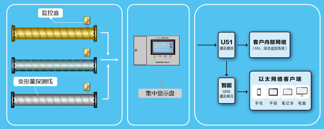 本系統(tǒng)具有24小時實時在線監(jiān)測管瓶自身的安全狀態(tài),至少提前10天預(yù)警,定位出險點(問題管瓶);記錄并遠(yuǎn)程傳輸,有效提示爆炸安全隱患,從而杜絕管瓶爆裂爆炸事故的發(fā)生。